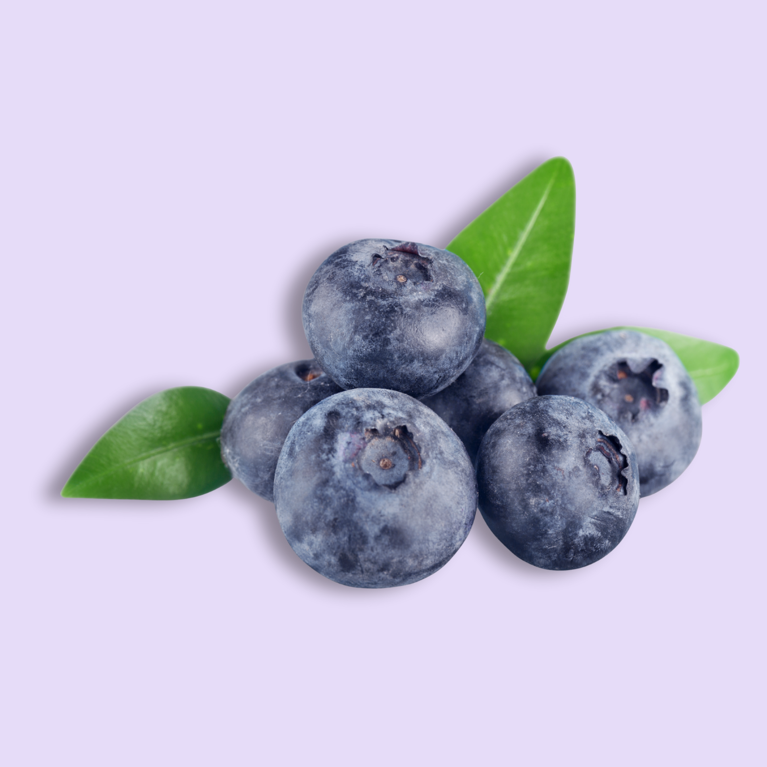 Blueberries are small, round berries with a deep blue to purple skin and a sweet, slightly tart flavor. They have a juicy texture and are commonly eaten fresh, in smoothies, desserts, or as a topping for cereals and yogurt.