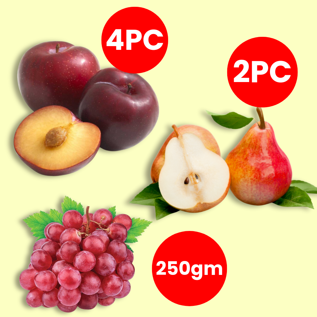 Plum + Red Pear + Red Globe Grapes Combo - Juicy | Sweet | Antioxidant-Rich